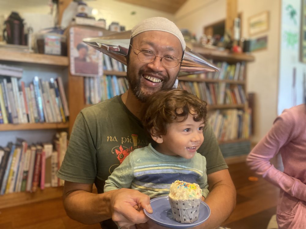 まささんは、6年間魚屋さんで働いたあと、15年前に旅人として西村家を訪れました。当初は2週間の予定でと言ったこの髭のおじさんが、そのまま述べ10年以上、一緒に暮らすことに。今ではすっかり家族のような存在です。